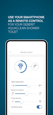 See rakendus ühildub sujuvalt mitmete Geberit toodetega, sealhulgas Geberit AquaClean dušš-WC-dega (nagu Mera, Sela alates 2019, Tuma, Alba, Cama), Geberit DuoFresh lõhnaeemaldusmooduliga, elegantse Geberit ONE peegelkapiga ja alates 2023. aasta mudelist ka esmaklassilise Geberit Monolith Plus sanitaarmooduliga. Muuda oma nutitelefon Geberit AquaClean dušš-WC täielikuks kaugjuhtimispuldiks, reguleerides seadeid mugavalt ja täpselt vastavalt oma isiklikele eelistustele.