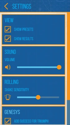 Sukeldu oma fantaasiamaailma veelgi sügavamale, valides 15 unikaalse ja visuaalselt kütkestava taustpildi hulgast, mis täiendavad iga seiklust. Genesys Dice on varustatud ka laia seadete komplektiga, mis võimaldab sul kohandada rakenduse käitumist vastavalt oma eelistustele. Reguleeri täringutulemuste ja eelseadistuste nähtavust, kontrolli heliefekte ning kalibreeri raputamistundlikkust, et iga veeretamine oleks just selline, nagu sa seda soovid. Genesys Dice on rohkem kui lihtsalt täringuveeretaja – see on sinu isiklik ja kohandatav lauamängupartner, mis täiustab iga mängukogemust.