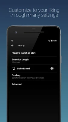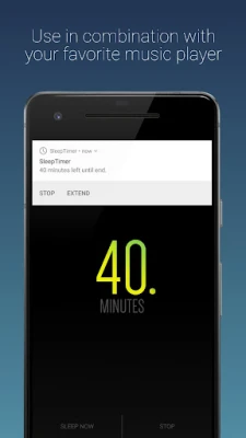 Sleep Timer on loodud töötama sujuvalt koos pea kõigi teie lemmikmuusika- ja meediapleieritega, olgu selleks siis Spotify, Google Play Music, TuneIn Radio, YouTube või paljud teised. Lihtne viis veendumaks, kas see toetab just teie eelistatud rakendust, on Sleep Timer proovile panna. Selle intuitiivne ja visuaalselt meeldiv kasutajaliides võimaldab teil vaevata määrata taimeri kestuse ja selle käivitada. Veelgi mugavamaks kasutamiseks saate luua eelseadistatud taimerid, mille vahel saate ühe nupuvajutusega lülituda. Ja kui uni ei taha kohe tulla, pakub "Raputa pikendamiseks" funktsioon võimalust taimeri kestust kiirelt pikendada lihtsalt telefoni raputades, ilma et peaksite seda avama.