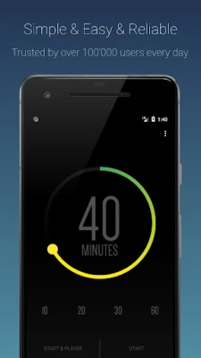 Kas olete kunagi jäänud magama oma lemmikmuusikat kuulates, ärgates hommikul tühja akuga ja muusikaga, mis on mänginud terve öö? Rakendus Sleep Timer pakub sellele levinud probleemile nutika ja elegantse lahenduse. See muudab teie seadme nutikaks unetaimeriks, mis sarnaselt klassikalisele stereoseadmele vähendab õrnalt helitugevust ja lülitab seejärel muusika täielikult välja, justkui teeksite süvenevasse unne rännakut. Lõpetage unehäired ja akude tühjenemine – laske Sleep Timeril hoolitseda selle eest, et teie unetunnid oleksid rahulikud ja energiat säästvad.